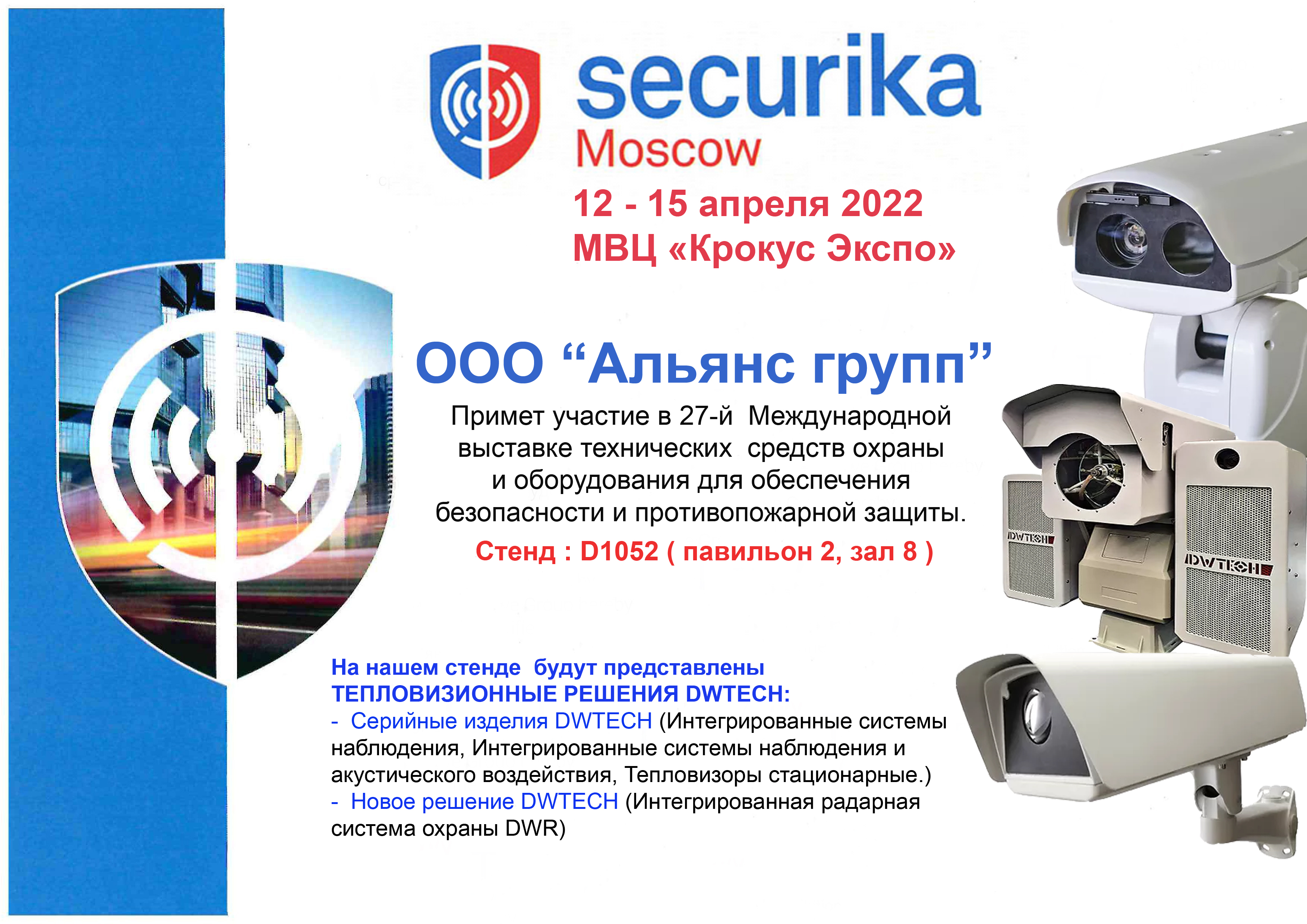 Информируем, что выставка Securika-2022 пройдет с 12 по 15 апреля 2022 в МВЦ «Крокус Экспо» в павильоне 2, зал 8.